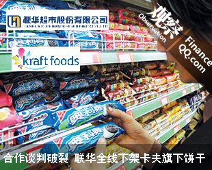 據(jù)知情人士透露,自去年6月聯(lián)華并購(gòu)華聯(lián)后,兩家企業(yè)進(jìn)入了長(zhǎng)達(dá)一年的整合期,并實(shí)施集約統(tǒng)一采購(gòu)。而此前兩家企業(yè)和供應(yīng)商之間的合同扣點(diǎn)是不一樣的,如卡夫給華聯(lián)超市的扣點(diǎn)比聯(lián)華超市高出30%,于是合并后的聯(lián)華要求享受與華聯(lián)同樣的扣點(diǎn),但卡夫方面非但沒(méi)有同意,反而還額外增加了其他附加條件,導(dǎo)致最終談判破裂。