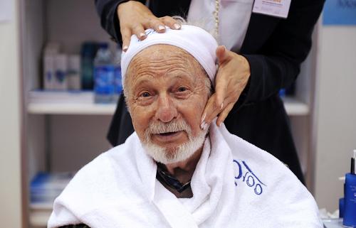 4月6日,在瑞士城市日內瓦舉行的第39屆發明展上,一位參觀者體驗5100西藏冰川礦泉護膚品的美容功效,該護膚品使用世界發明專利AMX天然活性抗衰老生物滲透技術,可在短時間內激活肌膚深層細胞,喚醒水循環系統,增強肌膚自身補水功能。新華社記者于洋攝