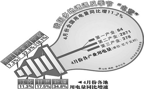 往年到夏季才出現的電力緊缺,今年提前到來。來自國家電網公司系統的數據顯示,進入4月份浙江、江西、湖南、重慶、陜西等多個省份電力供需存在缺口。5月以來,湖南電網最大電力缺口達456萬千瓦,浙江電網最大電力缺口200萬千瓦。