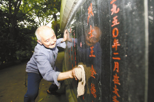 把烈士墓碑全部上漆沖刷,對于一個87歲、行動已有些遲緩的劉少文來說,并不是件容易事,但他堅持了下來。
