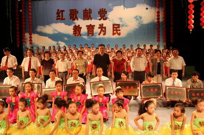 為紀念中國共產黨建黨90周年,弘揚熱愛中國共產黨、堅定不移跟黨走精神,引導全體教職工唱紅歌,更好地踐行科學發展觀,為宜秀教育工作發展營造良好氛圍,6月23日,宜秀區教育系統慶祝建黨90周年紅歌合唱比賽在安慶市人民劇院隆重舉行。區領導李順琪、丁邦華、葉林霞、嚴鋒、程結書、程賢華、高青琳、曹傳文、施勤、戴蓬等饒有興致地觀看了比賽并為獲獎單位頒獎,市教育局領導、區直部分單位、區關工委、各鄉鎮分管同志應邀觀看了比賽。局長黃虛實首先致辭。來自全區教育系統13家單位1200余名師生引吭高歌,抒發了對黨和祖國的火熱情懷,唱出了對美好生活的熱愛。
