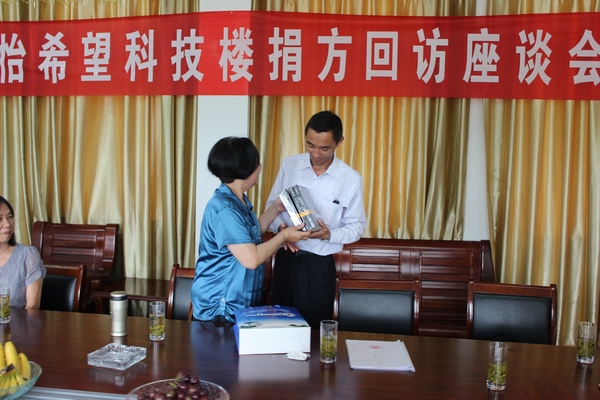 此次回訪活動,她們在區(qū)領導的帶領下,首先興致勃勃的參觀了五橫初中的校園。青山疊翠,樹木蔥濃,校舍整潔。學校幾年來面貌煥然一新,方老參事一行每到一處都很激動,感動于五橫初中這幾年的巨大變化,感動于黨和政府這幾年對學校的投入,教育城鄉(xiāng)均衡發(fā)展。與行人員還在五橫初中會議室舉行了捐方回訪座談會,會議氣氛祥和,方參事代表捐方激動的談到,捐資五橫初中并在科技樓內建設鄧稼先事跡陳列室不僅僅是我們的鄉(xiāng)情大愛,更主要的是充實學校的愛國主義內涵,希望學校發(fā)揚稼先精神,為社會培養(yǎng)更多的人才。方參事還在座談會上代其親屬向學校捐贈了兩套科普圖書《大數學家》。副區(qū)長程海東代表區(qū)政府表達了感謝之情,并報告了宜秀區(qū)義務教育均衡發(fā)展的情況,學校將在校舍安全、美好學校、提高學生素養(yǎng)、提高創(chuàng)新能力方面繼續(xù)邁進。教育局方局長代表學校向捐方介紹了學校近幾年的發(fā)展情況,感動于捐資助學的義舉,并表示學校一定不辜負捐方的期望,要內涵發(fā)展,硬件提升,品味提高,精品化打造五橫初中。省希望工程辦公室劉俐金主任、五橫初中趙章杰校長也發(fā)表了感言。