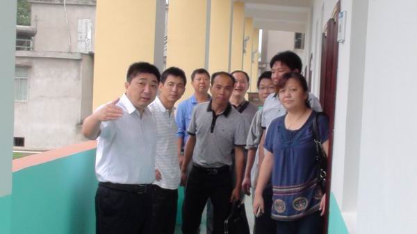 6月26日下午,宜秀區教育局方勁松局長、倪倩副局長、方華挺科長在何家友校長的陪同下,冒雨到白澤湖鄉沈店小學督查學校工程建設工作。