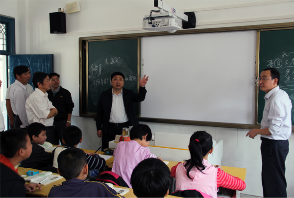 10月22日,區教育局局長方勁松、書記徐永生、副局長馬宏岱一行,在區教育科、電教館負責人陪同下,來到白澤湖中學、白澤湖鄉中心學校、楊橋鎮中心學校、羅嶺鎮火炬小學、羅嶺初中、大龍山鎮丁家小學、五橫初中實地察看學校班班通設備、理化生實驗室、音體美儀器設備、圖書等使用與管理情況,局長們每到一處深感學校設備配備齊全、充足,大多數教師都在使用,教育均衡得到了落實。