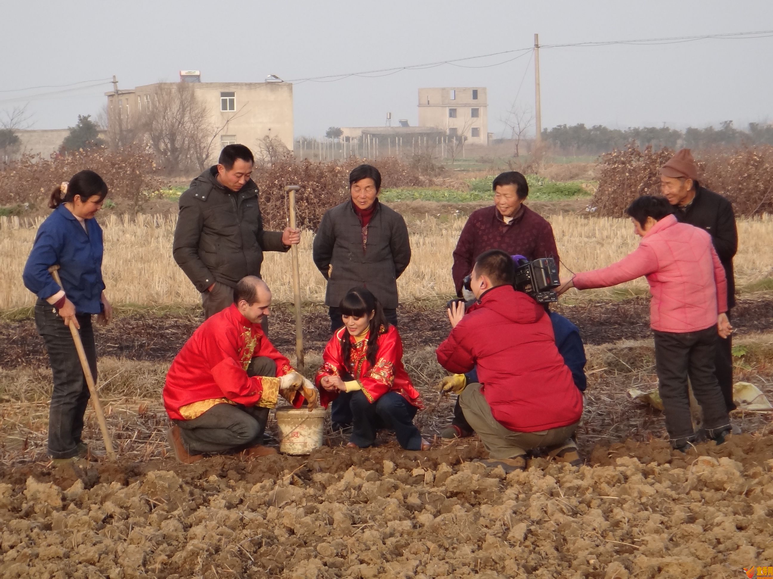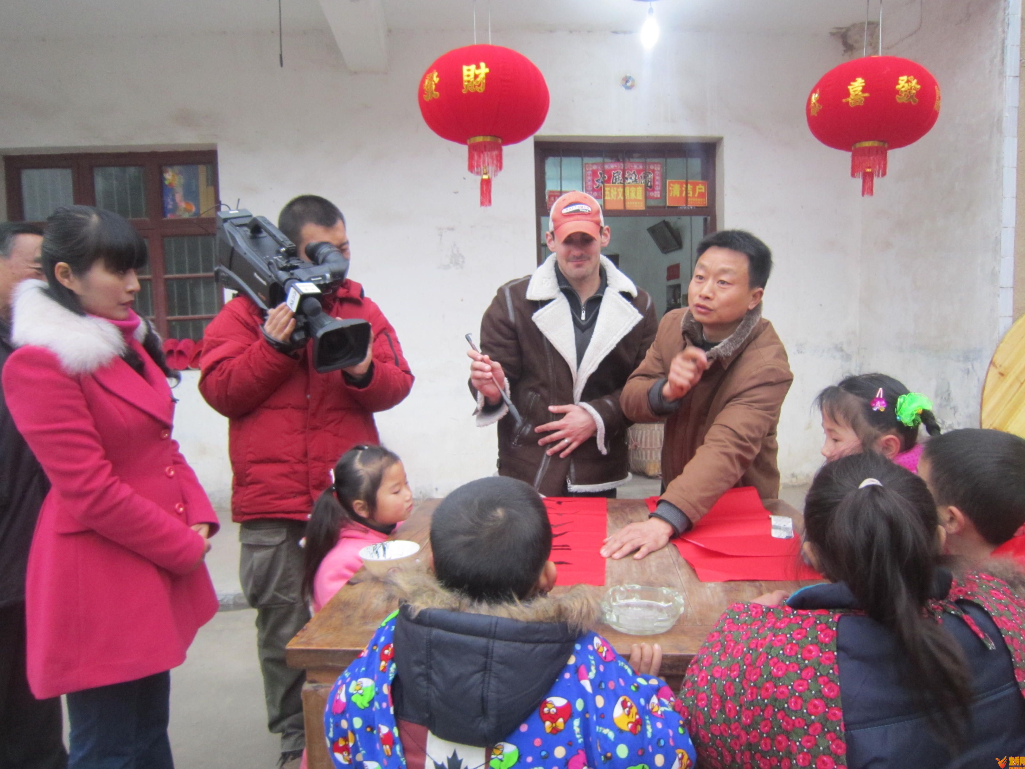 央視攝制組一行三人,先后深入羅嶺鎮、五橫鄉、白澤湖鄉進行了互動采訪。主持人毛競楊和安師院的美國留學生NEIL一起,探幽小龍山,倚著湖光山色對唱黃梅歌;尋訪黃梅村,解密孔雀養殖,到農家小院里拜師學唱黃梅戲;在楊亭村山林感受美景,體味新農村建設;到白澤湖體驗農田挖荸薺、石塘湖深水采藕。大家和農戶一起殺年豬,辦年貨,放煙火,吃年夜飯,其樂融融,過了一個具有宜秀特色的農歷大年。