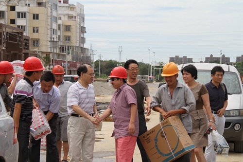 大橋開發區的有關負責同志和1584欄目組全體人員一起,走進旺旺集團、三鑫電力等企業的車間和大橋開發區部分保障房、市政工程建設工地,為一線員工送去了礦泉水、人丹、香皂、毛巾、電風扇、空調等總價值3萬多元在防暑降溫用品及設備。在車間、工地,慰問組一行現場了解施工、生產單位防暑降溫措施落實情況和生產經營及項目建設進展情況,感謝他們冒高溫、戰酷暑,為建設大橋開發區灑下辛勤的汗水。江義學