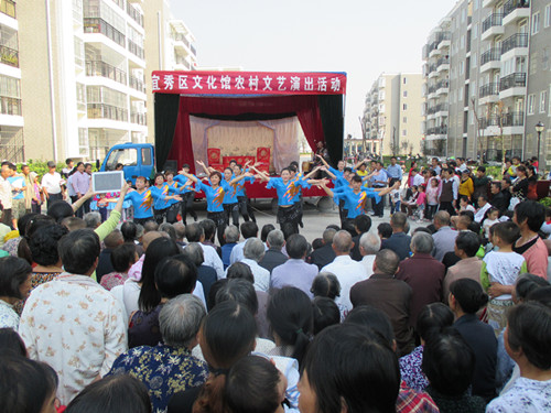 為豐富社區(qū)群眾的文化生活,國慶來臨之際,區(qū)文廣新局在楊橋鎮(zhèn)宣店社區(qū)開展的“送文藝進(jìn)社區(qū)”活動,在楊橋鎮(zhèn)文化站以及鳳水花苑小區(qū)工作站的全力配合下,活動在楊橋鎮(zhèn)鳳水花苑小區(qū)廣場順利舉行,活動現(xiàn)場氣氛熱烈,來自宣店社區(qū)及周邊的500多名群眾興致勃勃觀看了演出。