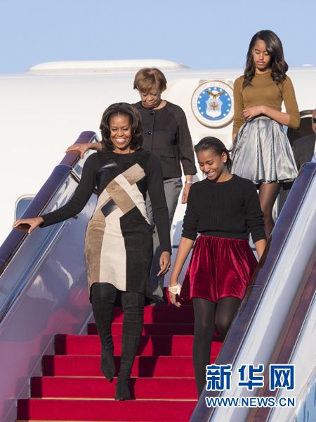 米歇爾的母親羅賓遜夫人,女兒瑪利亞和薩莎陪同她一起訪華。