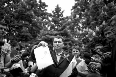 5月12日,烏克蘭盧甘斯克選舉委員會主席公布投票結果。圖/東方IC