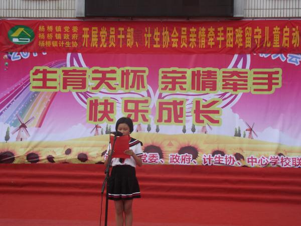 為切實踐行黨的群眾路線教育實踐活動,楊橋鎮黨委、政府、鎮計劃生育協會、楊橋鎮中心學校在“六一”兒童節來臨之際,于5月28日下午在中心學校開展幫扶困難留守兒童專項活動。區委常委、區宣傳部部長朱學云、區關工委、區人口計生委、區教育局領導及鎮黨政班子成員參加活動。