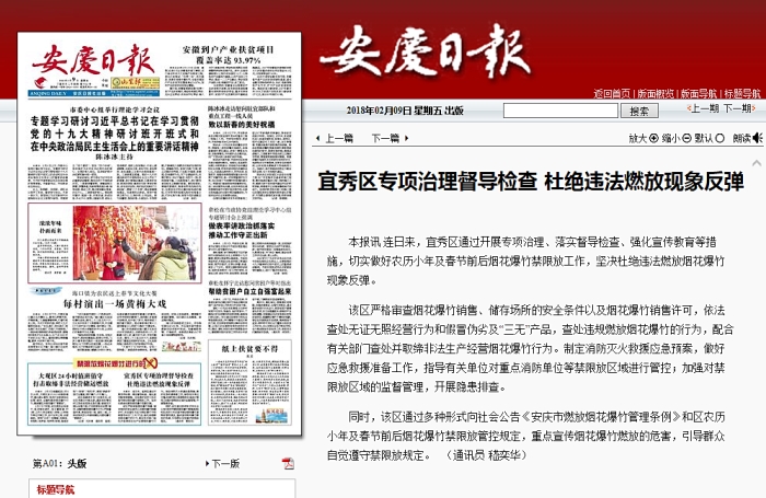 [安慶日報] 宜秀區專項治理督導檢查 杜絕違法燃放現象反彈