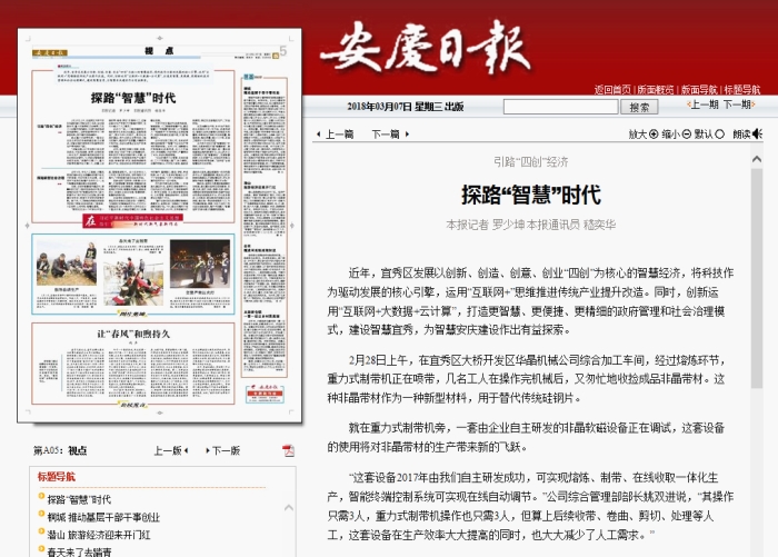 近年,宜秀區發展以創新、創造、創意、創業“四創”為核心的智慧經濟,將科技作為驅動發展的核心引擎,運用“互聯網+”思維推進傳統產業提升改造,培育創意、研發、制造等戰略性新興產業,促進實體經濟和數學經濟融合發展。