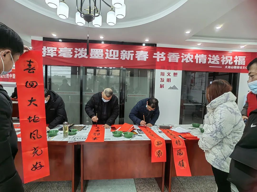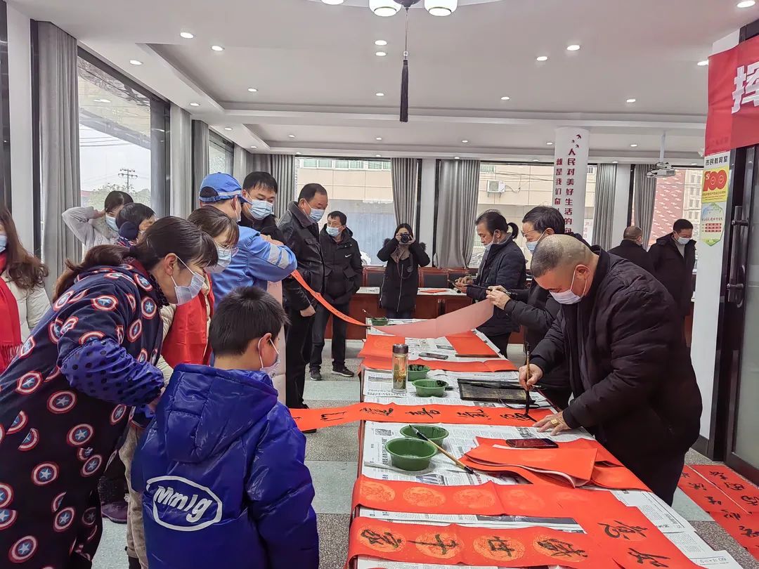 在新春佳節來臨之際,為助力鄉村振興提質增效,文化惠民政策深入基層,讓更多社區居民享受文化福利,弘揚傳統文化,讓更多群眾感受文化魅力。1月25日上午, 宜秀區大龍山鎮綜合文化站聯合鎮新時代文明實踐所、團委、婦聯開展“我們的中國夢”——文化進萬家之“揮毫潑墨迎新春,書香濃情送祝福”文明實踐活動。來自大龍山鎮的10余名書法家齊聚在宜秀區新時代文明實踐中心,現場為群眾免費書寫春聯,將濃濃的新春祝福用春聯的傳統形式送到大家的手中。