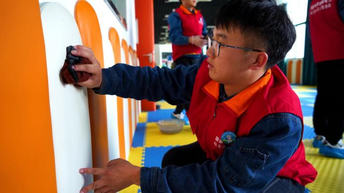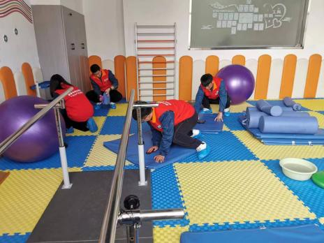 為踐行雷鋒精神,展現新時代青年志愿者風采,志愿者在運動大廳幫助消毒擦洗治療墊、滾筒、平衡杠、股四頭肌訓練儀、若干Bobath 球等等兒童康復器具,為孩子們營造整潔舒適的訓練環境盡一份力量。